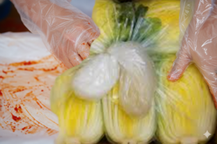- 배추의 속 사이사이에 양념을 꼼꼼히 넣습니다.